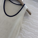 고급 원단 품질로 제작된 이태리 미학이 담긴 U넥 베스트입니다. 해군블루 배색 디테일로 여유롭고 자연스러운 분위기를 연출합니다. 미니멀한 올드머니 스타일링으로, 고급 비즈와 순면 스팽글 원사를 사용한 중후한 럭셔리 아이템입니다. 수입 원사와 스위스 직조 공법으로 제작되어 은은한 고급스러움을 자아냅니다. 핏은 우아하고 자연스러운 실루엣으로, 클래식한 디자인이라 누구에게나 잘 어울리며 슬림해 보이는 효과가 있습니다. S-L 사이즈 전개 (S사이즈: 가슴둘레 78cm, 총장 51cm)