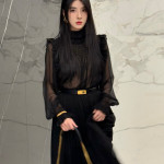 블랙 시스루 프릴 블라우스