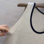 고급 원단 품질로 제작된 이태리 미학이 담긴 U넥 베스트입니다. 해군블루 배색 디테일로 여유롭고 자연스러운 분위기를 연출합니다. 미니멀한 올드머니 스타일링으로, 고급 비즈와 순면 스팽글 원사를 사용한 중후한 럭셔리 아이템입니다. 수입 원사와 스위스 직조 공법으로 제작되어 은은한 고급스러움을 자아냅니다. 핏은 우아하고 자연스러운 실루엣으로, 클래식한 디자인이라 누구에게나 잘 어울리며 슬림해 보이는 효과가 있습니다. S-L 사이즈 전개 (S사이즈: 가슴둘레 78cm, 총장 51cm)