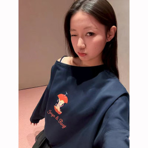 네이비 캐릭터 프린트 티셔츠