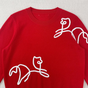 2026년 신상품으로 원판 1:1 맞춤 제작된 고급형 니트 스웨터입니다. 말년 연말연시 신상으로 중국 레드 컬러에 자수 아트 라인 말 패턴이 들어간 100% 양모 니트 풀오버 보온 스웨터입니다. 엄선된 100% 양모 소재로 12침 기계직조, 중량 230그램입니다. 올해 연말연시용으로 정말 놓칠 수 없는 니트 스웨터로, 착용 시 자연스럽게 신년 분위기를 연출하며 화사하고 열정적인 느낌을 줍니다. 모임이나 일상 외출 시 순간적으로 시선을 사로잡을 수 있습니다. 호주산 수입 100% 양모로 제작되어 맨살에 직접 닿아도 편안한 촉감을 제공합니다. 원사의 주름 방지 및 복원력이 업계 A급 표준에 달해 오래 입어도 변형되지 않으며, 편안함과 내구성을 모두 갖췄습니다. 고채도의 정적색 톤으로 색상의 밝기와 순도가 인체 피부색에 맞게 조정되어 절기 분위기와 일상 착용 시 시각적 매력을 모두 만족시킵니다. 극도로 심플한 라인의 추상적 말 토템 자수가 더해져 전체적으로 예술적 감각과 분위기를 더합니다. 단독 착용만으로도 코디의 핵심이 될 수 있습니다. 마이크로 드롭숄더의 H형 여유로운 재단으로 자연스럽게 체형 비율을 최적화하며, 캐주얼함과 세련미의 균형을 맞춥니다. 목선, 소매, 하단 모두 1x1 고밀도 신축성 골지 마감 처리로 오래 입어도 늘어나지 않으며, 편안함과 내구성을 동시에 갖췄습니다.